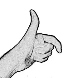 Dans ce cas, le pouce indique une translation et l'index une rotation.