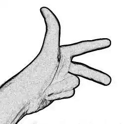 Elle utilise les doigts de la main. Il y a deux règles (les plus connues) : celle qui indique une rotation et une translation, et, celle qui indique trois translations.