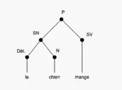 - [P [SN [Dét.le] [Nchien] ] [SVmange] ]
