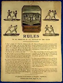 Les règles du London Prize Ring encadrent les combats de boxe à mains nues. En 1743, le Britannique Jack Broughton avait élaboré une liste de règles qui leur a servi d'inspiration. Promulguées en 1838 et révisées en 1853, les 29 règles ont été appliquées pendant plus d'un siècle avant d'être progressivement remplacées dans la seconde moitié du XIXe siècle par les règles du Marquis de Queensberry.