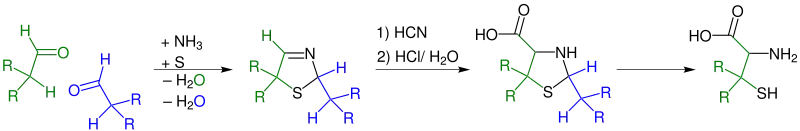 - (en) J. Martens, H. Offermanns et al., « Facile Synthesis of Racemic Cysteine », Angew. Chem. Int. Ed., vol. 20, no 8, , p. 668 (ISSN 1433-7851, DOI 10.1002/anie.198106681).