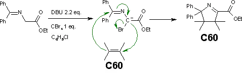Une alternative à la réaction de Bingel est une réaction du fullerène au diazométhane. Les esters N-(diphénylméthylène)glyciniques[3] réagissent dans la réaction de Bingel de façon proche mais toutefois différente, produisant des dihydropyrroles de fullerène .