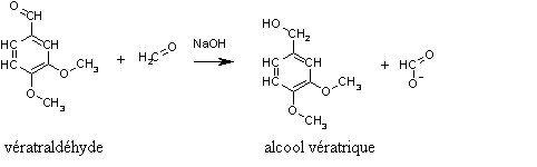 - Le formaldéhyde peut jouer le rôle de réducteur comme dans la transformation du vératraldéhyde en alcool vératrique: