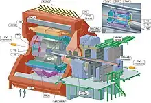 Les réactions nucléaires avec des noyaux lourds[1] (ou avec des ions lourds[alpha 1]) sont des réactions provoquées par la collision de deux noyaux atomiques accélérés, soit naturellement comme les rayons cosmiques ou lors de la nucléosynthèse stellaire, soit artificiellement par des accélérateurs. On les distingue des réactions avec des particules légères (photons, protons, neutrons ou particule α) ; les noyaux du faisceau vont du plus léger comme le lithium (nombre de nucléons A = 6) aux plus lourds comme l'uranium (A = 238).
