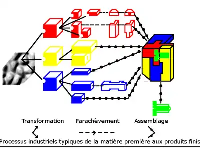 Le schéma ci-contre (Schéma 1) représente les trois processus typiques de production, de la matière première au produit fini.