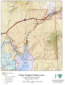 Bundy refusait de payer des droits pour faire paître son bétail sur des terres, à proximité de Bunkerville. D'après ses dires, ce sont ses ancêtres et non le gouvernement fédéral qui les ont valorisées. Il fut frappé d'une interdiction de faire paître son bétail et la Cour de district des États-Unis pour le Nevada condamna Bundy en 1998 par l'acte United States v. Bundy. En , après des années de violation de la décision de justice, le BLM tenta de capturer le bétail de Bundy qui paissait sur la terre litigieuse. Durant l'intervention, ils durent affronter l'opposition de la population locale et de soutiens armés fidèles à Bundy.