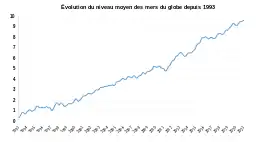 Le niveau moyen d'augmentation du niveau des mers est d’environ 23 cm entre 1880 et 2021[16] et de 10 cm entre 1993 et 2021. Il est passé de 1,3 mm par an entre 1901 et 1971, à 1,9 mm par an entre 1971 et 2006, puis à 3,8 mm par an entre 2006 et 2020. Ces données moyennes cachent des hausses du niveau marin différentes selon le lieu en fonction de l’effet des vagues et des marées, des mouvements verticaux du socle rocheux, de la nature géologique du terrain et l’affaissement du sol lié au pompage d’eaux souterraines[7].