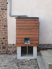 Une installation de récupération d'eau de pluie consiste en un système de collecte et de stockage de l'eau pluviale dans la perspective d'une utilisation ultérieure. La mise en place d'une installation spécifique, qui peut varier dans sa complexité suivant l'utilisation finale, est nécessaire à la satisfaction de cet objectif.