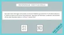 La question posée est « Approuvez vous le texte de la loi constitutionnelle concernant la "Modification des articles 56, 57 et 59 de la Constitution en matière de réduction du nombre de parlementaires", approuvée par le Parlement et publiée à la Gazette Officielle de la République italienne n°240 du 12 octobre 2019 ? »[41]