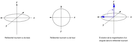 Le référentiel tournant est un modèle utilisé en spectroscopie RMN pour visualiser en trois dimensions l'évolution de la magnétisation au cours du temps. Ceci n'est cependant valable que pour des cas simples.