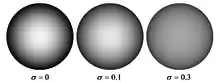 - une approche basée sur des modèles physiques élémentaires, par exemple une surface représentée par des facettes d'orientation aléatoire, dotées d'une réflexion spéculaire ou au contraire parfaitement diffuse (générant un rayonnement isotrope localement). On peut régler comme on le souhaite la distribution statistique d'orientation des facettes liée à la rugosité de la surface. Les exemples les plus classiques sont le modèle de Torrance-Sparrow (de) pour la réflexion spéculaire et le modèle de Oren-Nayar (en) pour la réflexion diffuse.