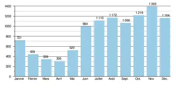 • une période de hautes eaux en automne et en hiver, liée aux précipitations ;