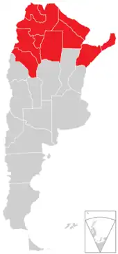 - Le nord-est de l'Argentine (es) (NEA), composé des provinces de Misiones, Chaco, Corrientes et Formosa.