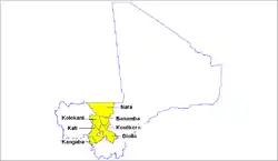 | Cercles[1] | Banamba, Kangaba, Kati, Kolokani, Koulikoro. |