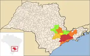 - les aires métropolitaines de Baixada Santista (au Sud), Campinas (au Nord), São José dos Campos (à l'Est),
