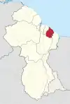 | 1 | Barima-Waini | Mabaruma | Barima (en) et Waini (en) | 20 339 | 26 941 | 1,3 | ![]() |