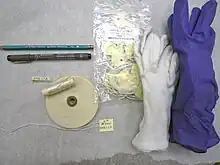 Divers outils d'un régisseur, permettant de manipuler des œuvres et objets tout en respectant leurs conditions de conservation.