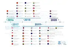 Les questions juridiques liées aux systèmes d'armes létales autonomes, notamment le respect du droit international humanitaire, sont discutées à l'ONU depuis 2013, dans le cadre de la Convention sur certaines armes classiques[137],[138]. Des réunions informelles d’experts ont notamment eu lieu en 2014, 2015 et 2016 et un groupe d’experts gouvernementaux a été nommé pour poursuivre les délibérations sur la question en 2016. Un ensemble de principes sur ces armes, mis en avant par le groupe d'experts gouvernementaux, a été adopté en 2018[139].