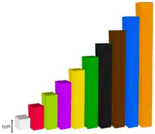 La méthode d'enseignement du calcul dite méthode des « nombres en couleurs » fut inventée par le pédagogue belge Georges Cuisenaire[3],[4] en 1952. Cette méthode fut popularisée par le livre « Les Nombres en couleurs », puis par le pédagogue et mathématicien égyptien Caleb Gattegno.