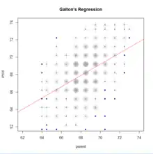La paternité de l'expression « régression linéaire » revient à Francis Galton qui, dans un article de 1886[3], constate un phénomène de « régression vers la moyenne »[6] de la taille des fils en fonction de la taille des pères.