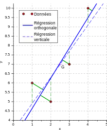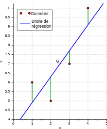 Parmi les modèles de régression linéaire, le plus simple est l'ajustement affine. Celui-ci consiste à rechercher la droite permettant d'expliquer le comportement d'une variable statistique y comme étant une fonction affine d'une autre variable statistique x.