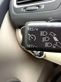 Le conducteur dispose d'une ou plusieurs commandes, de préférence au volant sur une seule manette, lui permettant d'activer le régulateur, de choisir sa vitesse de croisière, et de revenir au mode classique.