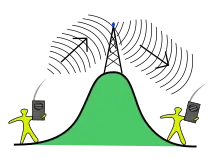 - le répéteur terrestre peut désigner un émetteur/récepteur exploité comme relais à l'instar d'un faisceau hertzien. Il permet généralement d'étendre ou d'améliorer le territoire de couverture des chaînes de télévision ou des stations de radio, dans des zones où les signaux ne sont pas correctement reçus, parmi lesquelles un vallée encaissée ou masquée, une forêt dense, une zone urbaine… Il peut être isofréquence en réamplifiant notamment les signaux ou convertir dans d'autres fréquences, les canaux qu'il capte et relaie localement ;