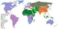 Bleu/Violet : ChristianismeVert : IslamOrange : Hindouisme
