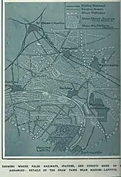 - Une « zone B » au nord-ouest de Paris, devant représenter un « faux Paris », située sur une boucle de la Seine le long de la forêt de Saint-Germain-en-Laye, similaire à celle de la capitale ; elle aurait pris forme aux alentours des villes de Maisons-Laffitte, Herblay et Conflans-Sainte-Honorine. Xavier Boissel précise : « Il [le faux Paris] devait reproduire le chemin de fer de la petite ceinture, certains points remarquables de la capitale comme le Champ-de-Mars, le Trocadéro, la place de l'Étoile et celle de l’Opéra, les Champs-Élysées, les grands boulevards ainsi que les gares des Invalides, d’Orsay, de Montparnasse et de Lyon ». Dans Quand Paris était une ville lumière, Pierre Marie Gallois explique que pour ce deuxième projet, jugé le plus important « [de] fausses gares, des places et des avenues factices, simulées par des lumignons adroitement disposés dans la forêt de Saint-Germain, auraient donné à l’ennemi aérien l'illusion de survoler un Paris au couvre-feu mal observé. Des sortes de plateaux roulants, portant des lampes tempêtes et tirés par des chevaux, formeraient des "trains" entrant ou sortant des "gares", elles-mêmes balisées par des feux fixes. Sur la Seine, quelques péniches vaguement éclairées évolueraient lentement. Ainsi seraient égarés les aviateurs allemands, la forêt de Saint-Germain passant à leurs yeux pour une cible "rémunératrice". »[11].