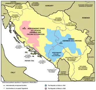 La république de Bihać dans la Yougoslavie sous contrôle de l'Axe.
