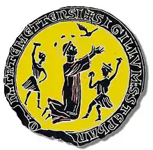 NB : Les armoiries « d’or un à un saint Étienne de carnation à genoux, en habit de lévite, accosté de deux lapidateurs, également en carnation » qui correspondent au sceau de la ville épiscopale de Metz et de son évêque auraient également pu être portée originellement par le Commun.