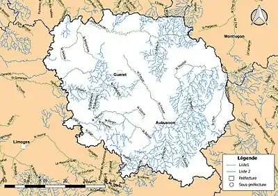 Carte de l'ensemble du réseau hydrographique de la Creuse.
