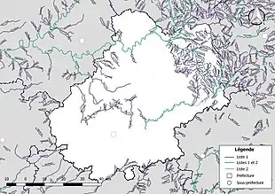 Localisation du département du Lot sur la carte des bassins hydrographiques français. | |