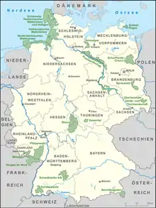 | 2 | Réserve de biosphère du Paysage fluvial de l'Elbe (de) (Flusslandschaft Elbe) Englobe les réserves de biosphère : Mittelelbe, Steckby-Lödderitzer Forst, Flusslandschaft Elbe-Brandenburg, Flusslandschaft Elbe-Mecklenburg-Vorpommern, Niedersächsische Elbtalaue |