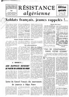 Résistance algérienne (en arabe : المقاومة الجزائرية), soit El-Mouqawama El-Djazaïria est un journal algérien[1], organe officiel de communication du Front de libération nationale, publié en arabe et en français dans les premières années de la guerre de libération nationale, du au [2]. Il a été remplacé en 1956 par El Moudjahid en tant qu'organe officiel[3] et définitivement absorbé en 1957.