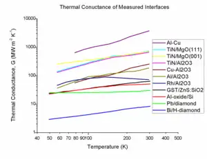 - (en) Ho-Ki Lyeo et David G. Cahill, « Thermal conductance of interfaces between highly dissimilar materials », Physical Review B, vol. 73, no 14, , p. 144301