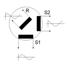 L'amplitude des deux tensions induites varie sinusoïdalement lors de la rotation du rotor. Les deux bobinages étant décalés de 90° l'un fournit une tension dont l'amplitude est proportionnelle au sinus de l'angle du rotor, et l'autre au cosinus.