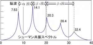 Les résonances de Schumann sont un ensemble de pics spectraux dans le domaine d'extrêmement basse fréquence (3 à 30 Hz) du champ magnétique terrestre. Ces résonances globales dans la cavité formée par la surface de la Terre et l'ionosphère, qui fonctionne comme un guide d'ondes, sont excitées par les éclairs. Le mode principal a une longueur d'onde égale à la circonférence de la planète et donc une fréquence de 7,8 Hz. Sont présentes, en plus de la fondamentale à 7,8 Hz, des harmoniques à 14,3 Hz, 20,8 Hz, 27,3 Hz et 33,8 Hz. Ces valeurs présentent une légère excursion de fréquence, précisées dans la page originale.