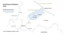 En , 500 à 600 Bondelswarts (dont 200 armés, bien que 40 armes seulement furent récupérées après la répression) sont prêts à combattre l'administration[1]. Jan Smuts envoie alors une armée de 400 soldats ainsi que son aviation pour bombarder la rébellion, causant la mort d'au moins 100 hommes, femmes et enfants[1],[2].
