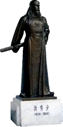 La figure emblématique de cette révolte est le chef des Taiping, Hong Xiuquan (1813-1864), originaire de la classe sociale paysanne et du groupe ethnique minoritaire dans le Sud, les Hakkas. Le nom qu'il avait reçu à la naissance était Hong Huoxiu, qu'il changera après avoir eu ses visions en 1837[10]. En 1836 il rencontre le missionnaire congrégationaliste Edwin Stevens (en), dont l'interprète, un Cantonais chrétien du nom de Liang Afa, lui remet neuf fascicules sur la foi chrétienne intitulés « Bonnes Paroles pour exhorter notre époque » (Quanshi liangyan), qu'il avait lui-même rédigés. Hong Xiuquan ne les lit pas, mais les conserve[11]. Après son troisième échec aux examens de la fonction publique de la Chine impériale, en 1837, il tombe gravement malade, et est pris de délires ; il a des visions de deux hommes, dont un a une barbe dorée et l'autre est son frère, qu'il ne sait pas interpréter[12].