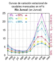 Le río Juncal se jette dans le río Aconcagua, à 1 430 mètres d'altitude, avec le río Blanco[réf. nécessaire].