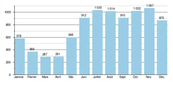 La lame d'eau écoulée dans cette partie du bassin versant - où se produit la quasi-totalité de l'écoulement - atteint ainsi le chiffre de 891 millimètres par an, ce qui doit être considéré comme très élevé.