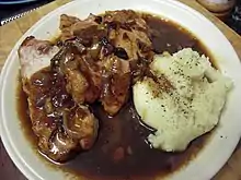 Le rôti de porc est un plat principal à base de porc braisé. Il est généralement accompagné de pommes de terre et d'autres légumes qui ont été cuits au four dans le jus de la viande.
