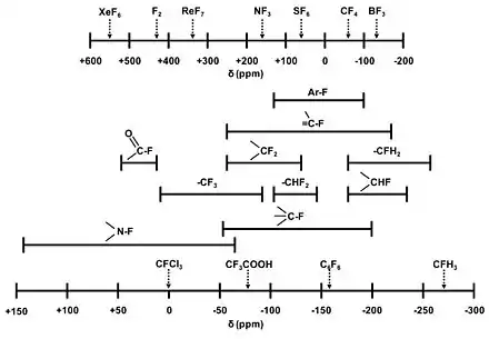 - (en) Cet article est partiellement ou en totalité issu de l’article de Wikipédia en anglais intitulé « Wikipédia:Fluorine-19 NMR » (voir la liste des auteurs).