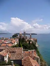 La vieille ville se compose de deux parties : Kaldanac, le quartier le plus ancien, à l'extrémité de la presqu'île, et Varoš, remontant à l'époque comprise entre le XVe et le XVIIe siècle. Trois rues principales parallèles parcourent la presqu'île dans le sens de la longueur : Donja ulica, « rue basse », Srednja ulica, « rue moyenne », et Gornja ulica, « rue haute », entrecoupées de nombreuses ruelles, partiellement en escaliers.