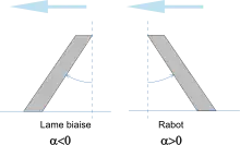 - la lame biaise, constitué d’une lame fixe galbée et d’une lame d’usure ;