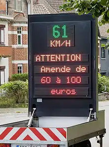 Certains modèles permettent d'afficher un smiley suivant le respect ou non de la vitesse, voire le nombre de points qui auraient été perdus si le radar avait été un radar classique[2], et certains peuvent afficher la plaque d'immatriculation du véhicule en infraction[2]. ou le risque d'amende encourue lorsque vous dépassez la vitesse maximale admise. D'autres pays évitent ce type de pratiques[3].