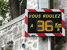 Ces radars utilisent l'effet Doppler pour mesurer la vitesse des véhicules et informer les conducteurs sur leur vitesse réelle, et ont pour objectif de les inciter à ralentir avec des messages brefs (école, danger, ralentir) pour respecter la vitesse autorisée dans l'agglomération (généralement 50 km/h, zones 30 km/h dans les grandes villes comme Paris, Lyon). Ils peuvent aussi enregistrer les vitesses des véhicules pour établir des statistiques de circulation recueillies par liaison radio sous forme de tableurs[réf. nécessaire].