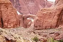 Le monument national de Rainbow Bridge (en anglais, Rainbow Bridge National Monument) est un monument national américain administré par le Glen Canyon National Recreation Area. Il abrite le plus grand pont naturel du monde. Située à l'extrémité du lac Powell au sud de l'Utah, le pont mesure près de 84 mètres de long, sa hauteur est de 90 m et sa largeur de 10 m[2]. Le site est un lieu sacré pour les Amérindiens et par respect pour leurs croyances, nul ne doit s'en approcher ou passer dessous[3]. Plusieurs familles amérindiennes résident encore à proximité.