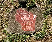 Après la guerre, Bradley resta silencieux à propos de ce qu'il avait vécu, refusant de répondre aux questions des journalistes et affirmant qu'il avait tout oublié[34]. Durant ses 47 années de mariage, il ne parla de son expérience qu'une seule fois, à sa femme, et plus jamais ensuite[23]. En famille, le sujet était considéré comme tabou. Il donna une seule interview, en 1985, sur la recommandation de son épouse qui lui demanda de le faire pour ses petits-enfants[35]. Après la mort de Bradley en 1994, sa famille se rendit sur le mont Suribachi en 1997 et déposa une plaque (faite de granit du Wisconsin et de la forme de cet État) à l'endroit même où le drapeau fut hissé[36]. À sa mort, le fils de Bradley, James Bradley, ne connaissait presque rien de ce que son père avait vécu à la guerre[23]. Après quatre ans de recherche et d'entretiens des acteurs de cet événement, James Bradley publia en 2000 Mémoires de nos pères, qui retrace l'histoire de la pose du drapeau et de ses acteurs. Le livre fut adapté au cinéma par Clint Eastwood en 2006.